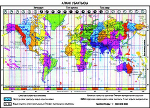 АЛКАК УБАКЫТЫ ‒ жер бетин меридиандар боюнча 24 алкакка бөлүү аркылуу (15° узундук боюнча) аныкталуучу күн убактысы. Эсептөө батыштан чыгышты карай нөл алкагы ‒ Гринвич меридианынан башталат. Бир алкактын ичинде жаткан бардык жердеги убакыт бирдей деп алынат. Ал коӊшулаш жаткан алкактардан 1 саатка айырмаланат. Айрым алкактардын өз аттары болот; мисалы, нөл алкагы ‒ батыш европалык (дүйнөлүк), 1-алкак ‒ ортоңку европалык, 2-алкак ‒ чыгыш европалык алкак убакыты деп аталат. Алкак убакыты алгачкы жолу 1883-жылы АКШда кабыл алынган. Кыргызстандын аймагы 5-алкакта жайгашкандыктан бүткүл дүйнөлүк убакыттан (Лондон шаарынан 5, Москва шаарынан 3 саатка) айырмасы болот; Лондондо, Москвада саат 6 болгондо Бишкекте саат жебеси 11ди жана 9ду көрсөтөт.