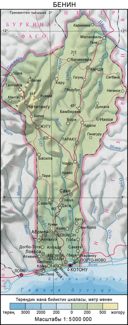 БЕНИ́Н , Б е н и н Р е с п у б л и к а с ы (1975-жылга чейин Дагомея) – Батыш Африкадагы мамлекет. Түндүгүнөн Нигер, түндүк-батышынан Буркина-Фасо, чыгышынан Нигерия, батышынан Того мамлекеттери м-н чектешет. Түштүгүн Гвинея булуңу чулгайт. Аянты 112,6 миң км2. Калкы 14,1 млн (2023). Расмий тили – француз тили. Борбору – Порто-Ново шаары. Административдик-аймактык жактан 12