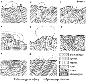 Бүктөлүүнүн пайда болуу схемасы.