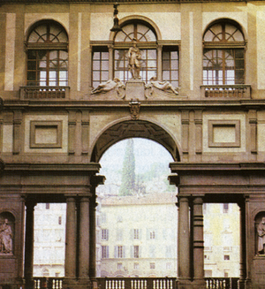 Ж. Вазари жана Б. Буонталенти. Флоренциядагы Уффици имаратынын түштүк жагындагы арка. 1580–1585-жылдар.