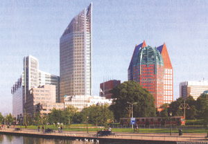 Өкмөттүн жана король сарайынын резиденциясы, Бириккен Улуттар Уюмунун эл аралык соту жайгашкан. Консерватория (1908), музейлер бар. XI кылымдын аягынан эскерилет (XIX кылымдын башынан шаар). Бинненхоф архитектуралык ансамбли, готика стилинде курулган Синт-Якобскерк чиркөөсү (XIV кылым), эски ратуша (1564–1565), Маурицхёйс (1633–1635) ак сарайында королдордун сүрөт кабинетине таандык «алтын кылымдын» көркөм чыгармалар коллекциясы сакталган.