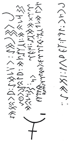 Мойгын өрөөнүнөн табылган жазуу эстеликтин эстамп – көчүрмөсү. Д. Д. Ва­сильевдики боюнча берилди.