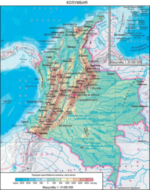 КОЛУ́МБИЯ , К о л у м б и я Р е с п у б л ик а с ы – Түш. Американын түн.-батыш бөлүгүндө жайгашкан мамлекет. Батышынан Тынч океан, түндүгүнөн Кариб деңизи м-н чулганат. Түн.-батышынан Панама, түн.-чыгышынан Ве-