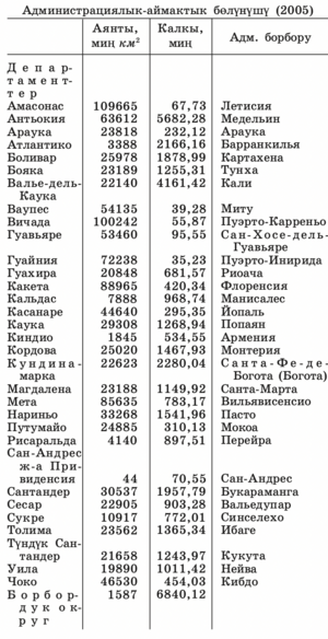 орун). Борбору – Санта-Фе-де-Богота (Богота).