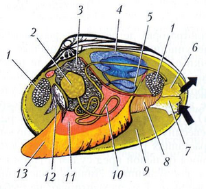 азык сиңирүүгө жардамдашат ж-а анаэроб шартында жашаган моллюскаларды кычкылтек м-н камсыздайт. Жүрөгү үч камералуу, кан айлануусу туюк эмес, бөйрөгү экөө, нерв системасы 3 жуп ганглийден турат. Сезүү органдары начар өнүккөн. Денесинин сырткы эки капталы капка (раковина) м-н капталган. Капкалардын курсак жак четтери ачылып, жабылат, жон жагы бири бирине тиш-тиш болуп ашташкан. Капканын ички бети седеп заты м-н жылмаланып, жалтырап турат. Моллюсканын денесинин сыртынан жаап турган мантиясы (кементайы) бар. Кээ бир түрлөрү бермет пайда кылат. Деңизде ж-а тузсуз сууларда топуракка көмүлүп, кээси бош же субстратка бекип жашайт. Суунун түбүндөгү детрит, планктондор м-н азыктанат. Булар дүйнөлүк океандарда кеңири тараган. 14 түркүмү, 130 тукуму, 1000дей уруусу, 20 миңдей түрү бар. КМШнын деңиздеринде ж-а сууларында 400дөй түрү кезигет. Кош капкалуу моллюскалардын көпчүлүгү айрым жыныстуу, кээ бири – гермафродиттер.