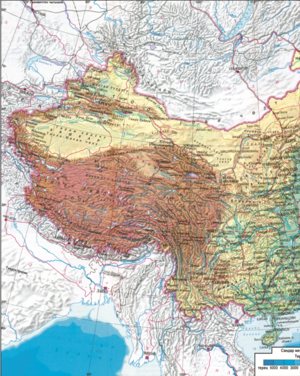 дар жайгашкан; алардын ирилери: Тайвань, Хайнань. Кургактык м-н өткөн чек арасынын уз. 22,8 миң км. Түн.-чыгышынан КЭДР ж-а Россия, түндүгүнөн Моңголия, түн.-батышынан Россия, Казакстан ж-а Кырг-н, батышынан Тажикстан, Афганстан, о. эле Пакистан, түш.-батышынан ж-а түштүгүнөн Индия, Непал ж-а Бутан, түш.-чыгышынан Мьянма, Лаос, Вьетнам м-н чектешет. Аянты 9,6 млн км2 (дүйнөдө Россия ж-а Канададан кийинки 3-орунда). Калкы 1,3 млрддан ашык (2009, дүйнөдө 1-орунда).