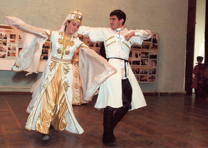 1957-жылы гана Карачай-Черкес автономдук облусу ка­лыбына келтирилип, карачайлар кайрадан мекенине кай­тып келишкен. 1991-жылы Карачай-Черкес республикасы түзүлгөн. Негизги кесиби – дыйканчылык, мал чарбачылык. Эркектери көйнөк, ыштан, беш­мант, черкеска, кой терисинен тигилген тон, башлык, папах кийишип, белдерине кур кур­чанып, бычак, канжар тагынышкан. Аялдары жеңи узун, кенен тигилген туника сыяктуу жибек көйнөк, узун шаровар, кооздолуп жасал­ган баш кийим кийип, үстүнөн жоолук салын­ган. Тамак-ашы негизинен эт, дан, сүт азыкта­ры. Суусундук катары чай, айран, майрам күндөрү бозо, сыра кеңири колдонулат. | |||