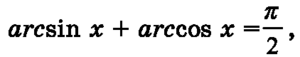 -1< ''х'' <1, arcsin ''х + arccos | '''-1< ''х'' <1,''' arcsin ''х + arccos'' | ||
