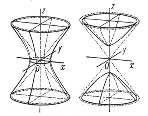 жарым огу барабар болсо, а й л а н м а Гиперболоидди берет. Бир көӊдөйлүү Гиперболоид сызыктуу бетке ээ, к. Бир көӊдөйлүү гиперболоид,
