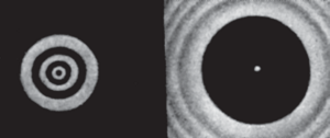Жарыктын дифракциялык шакекчелери: а – тегерек тешиктен өткөндө; б – тегерек экрандан кийин.