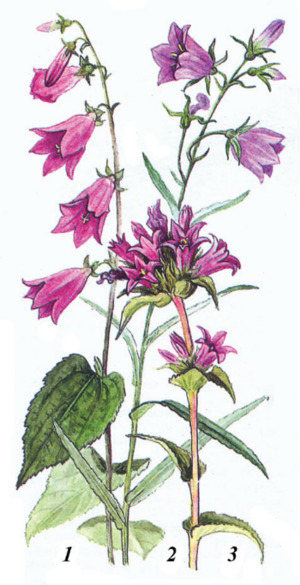 Коңгуроо гүл: 1 – жазы жалбырактуу коңгуроо гүл; 2 – көп жылдык коңгуроо гүл; 3 – кыз­ылт-көк гүлдүү коңгу­роо гүл.