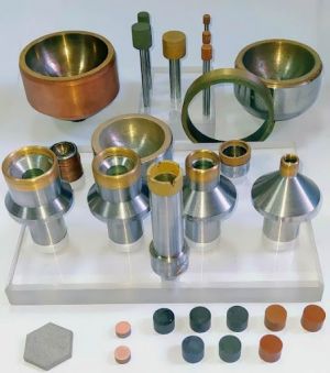АЛМАЗДУУ АСПАПТАР‒ кесүүчү бөлүгү табигый же синтетикалык алмаздан жасалган жабдыктар. Ага жылмалоочу чарык, өгөө, алмаздуу кескич, кайрактуу (абразивдүү) аспаптарды курчута турган калем жана чыгырык (ролик), бургулоо аспаптары кирет. Аларды жасоодо күкүм же кристалл түрүндөгү алмаздар пайдаланылат. Колдонулушуна жараша алмаз күкүмдөрү органикалык ийилгич (резиналык), металл жана башка байланыштыргычтары менен бириктирилет. Мында 100%түү кошулманын 1 мм3 катмарында 0,878 мг алмаз болот. Алар менен катуу куймалар, түрдүү конструкциялык (кварц айнеги, карапа жана башкалар) жана курулуш материалдары (бетон, мрамор, гранит) иштетилет.