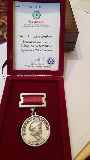1993 – Кыргыз Республикасынын Ардак грамотасы 2003 – «Кыргыз Республикасынын маданиятына эмгек сиңирген ишмер» ардактуу наамы 2009 – Кыргыз Республикасынын маданият жана маалымат министрлигинин «Маданияттын мыкты кызматкери» төш белгиси 2009 – Кыргыз Республикасынын Жогорку кеңешинин төрагасынын «Кыргыз Республикасынын Жогорку Кеңешине 70 жыл» юбилейлик медалы 2010 – «Кыргыз киносунун отличниги» төш белгиси 2010 – Кыргызстан улуттук киноакадемиясынын академиги 2017 – Кыргызстан кинематографисттер уюмунун башкармалыгынын «Кыргыз керемети» медалы 2022 – Кыргыз Республикасынын эл артисти |